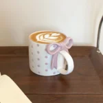 استمتع بأوقات القهوة الخاصة بك مع كوب القهوة السيراميك الأنيق المصمم بشكل فيونكة. هذه اللمسة الفريدة من نوعها تضيف لمسة من الأناقة إلى كل رشفة، مما يجعل لحظاتك لا تُنسى. سواء كنت تستمتع بفنجان قهوة في الصباح أو تتناول مشروبًا دافئًا في المساء، هذا الكوب هو الخيار المثالي لجعل تجربتك أكثر متعة .